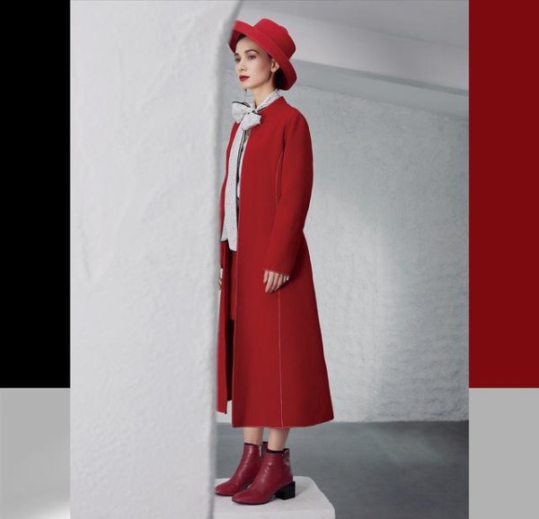 红色的中长款呢子大衣,不仅显气色,还能凸显身材的修长。