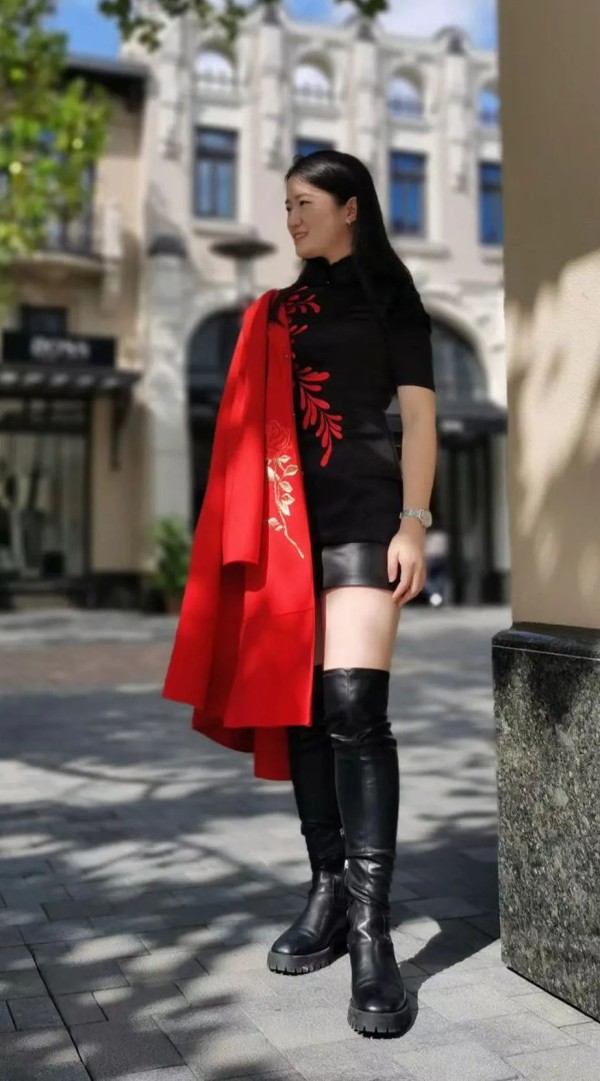 谁说旗袍只能在正式场合严肃穿搭?一些中西混搭的改变也能穿出不同的style呢。尝试一下中式复古旗袍马甲+帅气的过膝皮靴穿搭,演绎一下鬼马少女感,青春洋溢的感觉一下子就出来了。如果再外搭一件颜色鲜艳的大衣,旗袍还是传统内敛的感觉吗?是不是活泼了不少?
