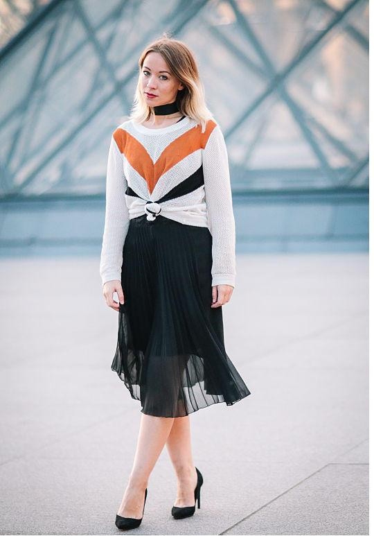 2.上暖下冷:针织毛衣+半裙