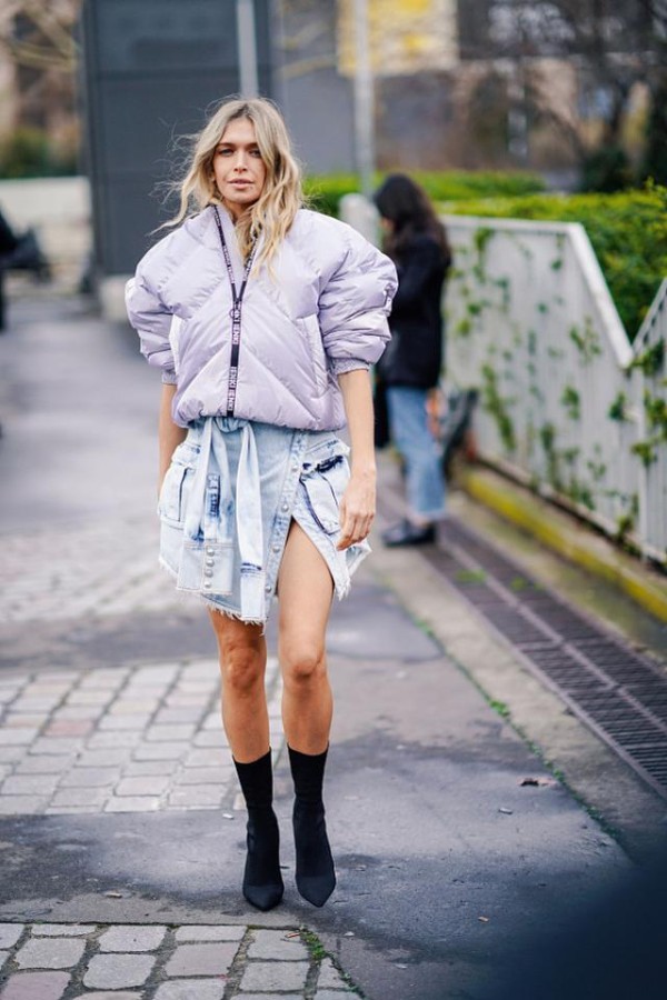 2.上暖下冷:羽绒服穿搭look