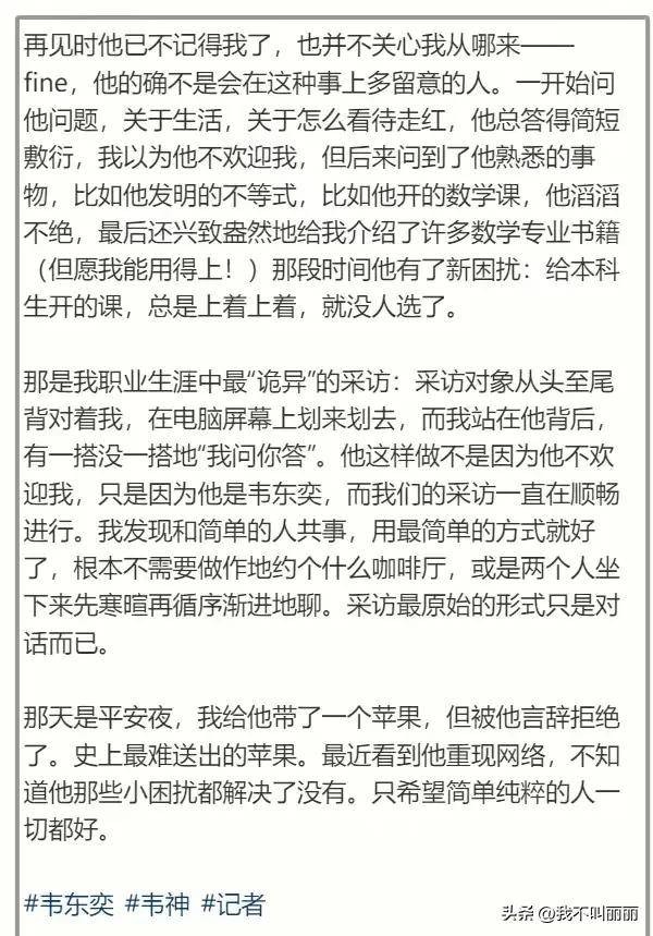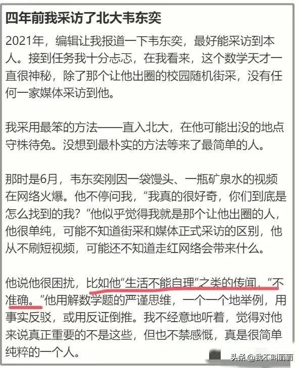 我认为,这种关注可能带来了误解。韦东奕渴求的只是一个专注的空间,他不在乎外界的喧嚣与打扰。如果这份被动的关注能为他提供更多支持与帮助,或许他的研究初心能够得以保留。虽然热闹之中也许蕴藏着一丝温暖,但若这种聚焦变成压力,他所热爱的事业将不可避免地受到影响。