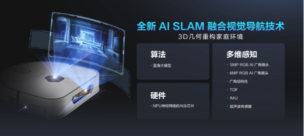 在软实力上,萤石AI洗地机器人RX30 Max还搭载了AI SLAM融合视觉导航技术 ,实现多维感知能力,能够3D实时重构家庭环境,实现了路径更精准、清洁更高效。此外萤石还增加了四组夜视补光灯,夜间也能精准导航, 24小时智能托管全家。