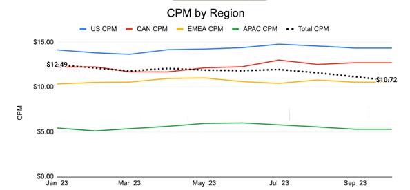 由于亚太地区的CPM低于美国,因此总体CPM正在下降。