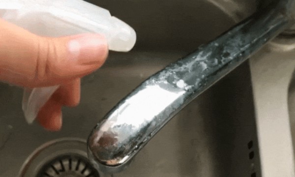 我们可以在水垢上面喷洒清洁剂,然后静置1分钟,在用抹布一擦就亮。