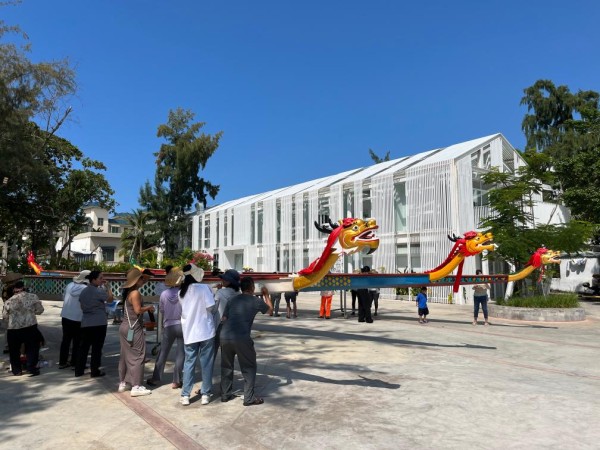 在滨海旅游城市海南三亚,有一个名为“西岛”的小岛。中秋假期,记者走进西岛渔村广场,看到众多游客、村民正围在三艘龙舟旁用画笔进行创作。