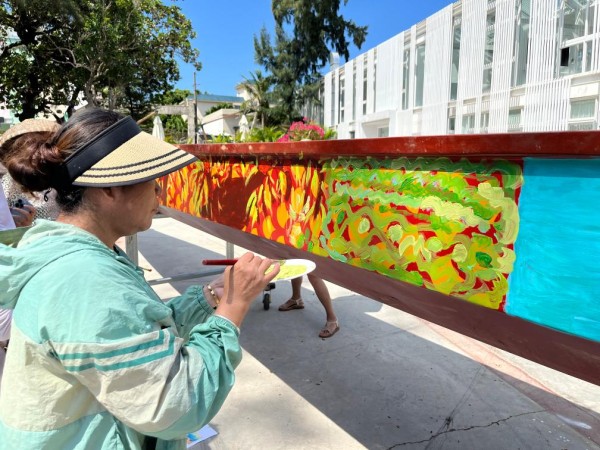 中秋假期举办的“西岛生态艺术节之中秋乐陶陶”活动免费对外开放,游客和村民可以在龙舟这块“画布”上尽情创作。