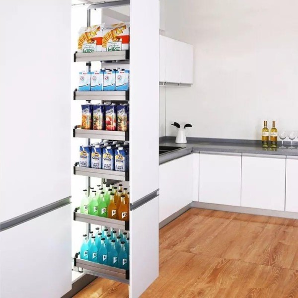 可以在家具之间放置推拉式的置物架,把空闲的小空间用起来。厨柜中也可以加入小型抽拉柜子的设计,放置调味品。如果你家的厨柜经过拐角,不想浪费空间,就点击兔狗全屋定制-厨柜定制,把边角空间利用起来。巧用垂直空间垂直空间的收纳功能也不能忽视,可以利用挂钩和隔板让墙面和柜子扩容。