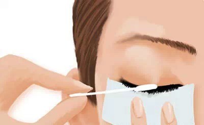 最后将化妆棉放在上眼皮处,用棉签将残留在眼睫毛下端的睫毛膏擦拭干净。如果下睫毛也涂了睫毛膏的话,就用相同的方法将其卸掉。