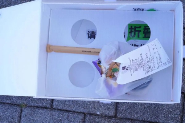 只要数一数当天堆叠在回收处的外卖箱个数,就能知道空投柜一天的订单量。