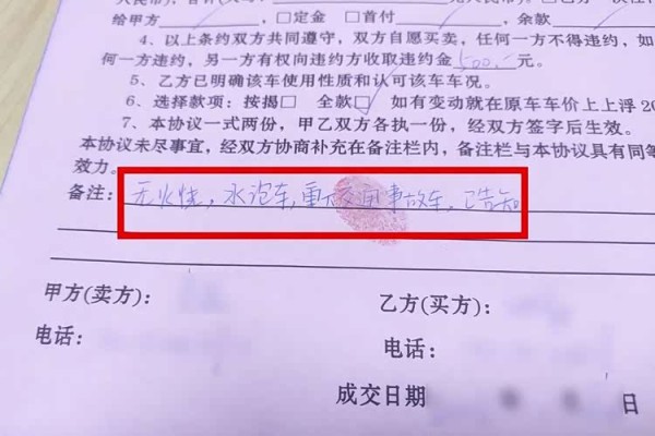 有的二手车合同上任何承诺保证都没有,除了价格什么都没写,甚至于连手印都没盖;有合同还有写了一堆文字,但就是看不清内容,故意含糊不清;所以在签合同时候一定要谨慎对待,承诺的内容工整无涂抹,无错字漏字情况,确定合同的内容后然后再签字盖章;