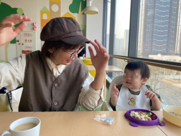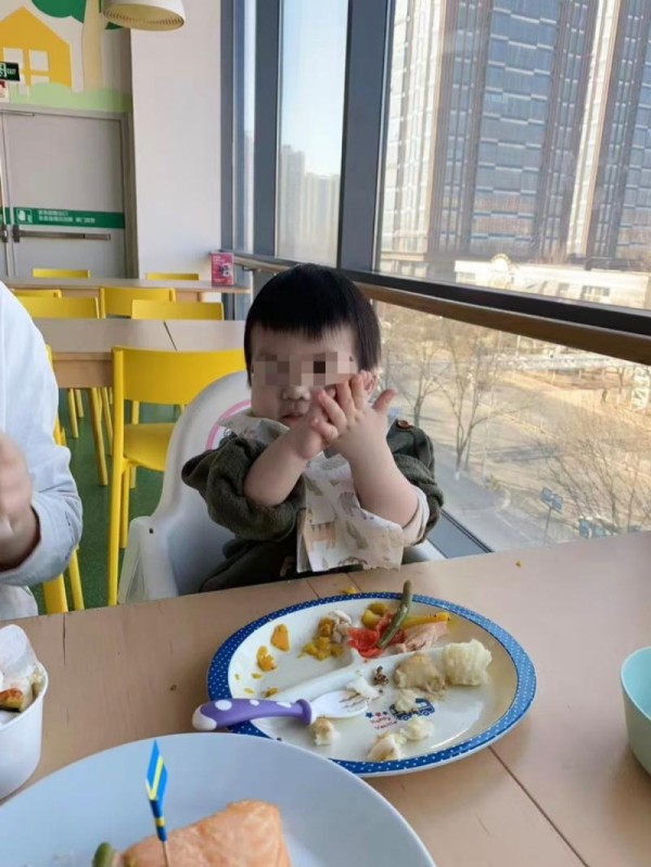 王女士的儿子在宜家中北商场餐厅第一次学会用手势表示感谢