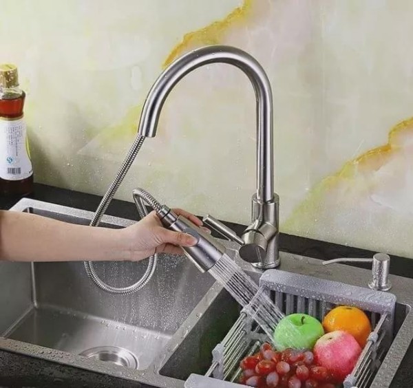 这种像花洒一样的水龙头,轻轻松松就把角落位置清理干净了。这种抽拉式水龙头的设计非常人性化,它既可以固定在水槽上,像普通水龙头那样使用,解放我们的双手,方便我们洗碗洗菜,也可以像淋浴的手持花洒那样,拿在手里能让水龙头直接清洗,太方便了!