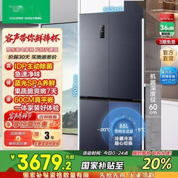 以503升型号为例,日均耗电量仅0.89度,按照0.6元/度电费计算,年省电费可达150元以上。部分型号还享受国家节能补贴,购机时直接减免20%,双重节省更划算。