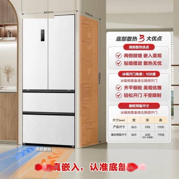⚠️ 散热边距:传统冰箱需要10cm以上侧边距,而容声零嵌系列仅需2cm