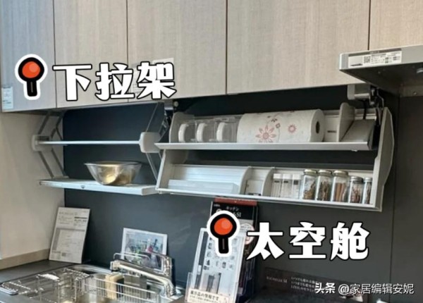 所以,我们可以学学日本人的做法,他们在设计吊柜的时候,都会采用了一种下拉式的设计,