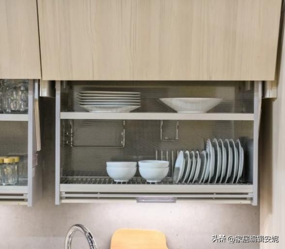 在设计橱柜的时候,千万不要只是做普通的柜子了,用着很不顺手,还收纳不了什么东西,有时候在里面放了物品之后,上面的空间就浪费了。