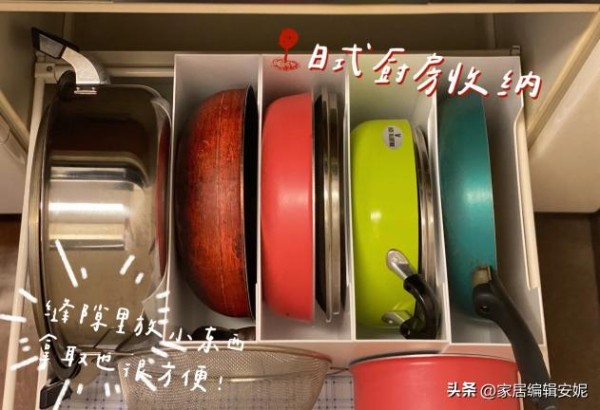 很多人觉得抽屉收纳是比较小的,这种想法不正确,因为抽屉是可以自己控制的,不管是锅具,还是筷子、勺子都能合理的收纳,拿取都变得轻松了不少。