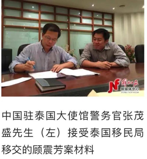 经调查发现,顾震芳已于2000年10月27日,持因私护照从上海虹桥机场飞往泰国,此后便杳无音讯。