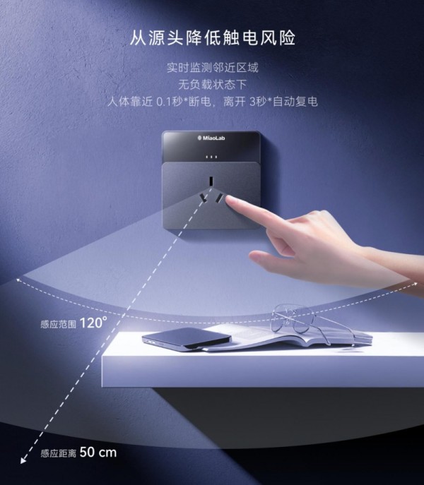对于追求前沿智能和的用户,不妨聚焦妙莱墙面雷达墙插这类智能化产品。它搭载毫米波雷达传感器,以 50cm 感应范围、120°覆盖角度,精准捕捉人体或动物移动轨迹。无负载时达成“人近断电,人走复电”的智能管理,将主动安全理念推向新高度,是未来智能家居安全领域的核心担当。