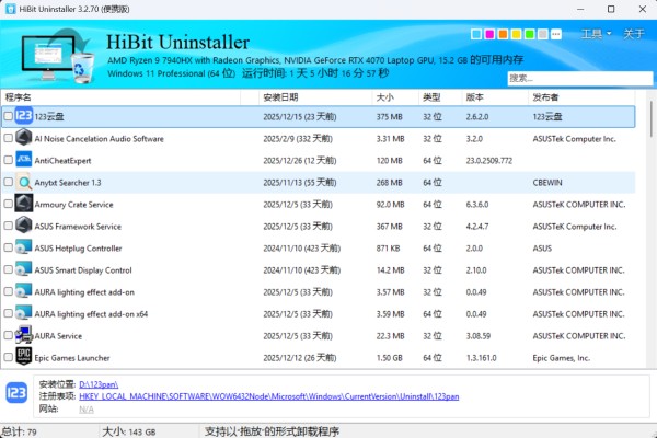 HiBit Uninstaller:绿色便携的 “全能优化管家”,仅十多 M 体积,单文件无需安装,除了卸载功能,还集成进程管理、系统垃圾清理、注册表修复等全方位优化工具,适合需要一站式系统维护的用户。