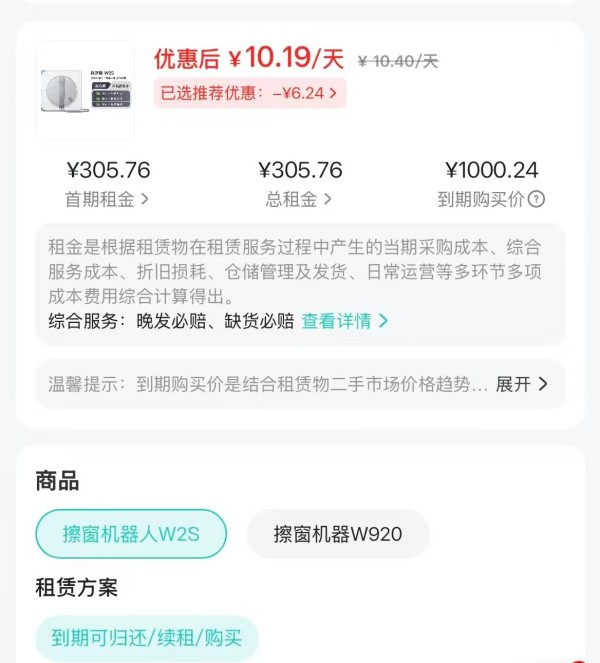除了擦窗机器人,记者发现平台上还有扫地机器人、布艺清洗机等多种设备。针对沙发等软家具的深度清洁,布艺清洗机采用专为织物设计的温和刷洗和污渍识别技术。温岭的李女士表示:“租三天130元左右,可以清理家里的被小朋友弄脏的沙发。买的话要上千元一台,用的频率也不高,现在租来挺好的。”