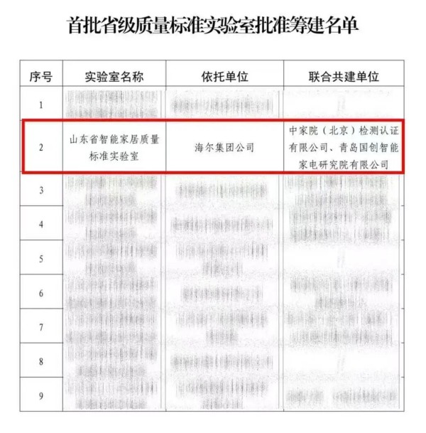 行业唯一!海尔获批筹建“山东省首批质量标准实验室”
