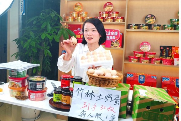 “幸福微坊”项目成员进行直播带货。长丰县双墩镇滁河社区供图