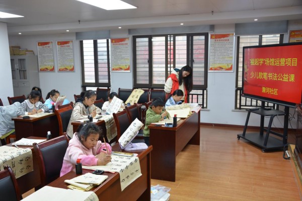 社区举办的“益”起学软笔书法公益课。长丰县双墩镇滁河社区供图