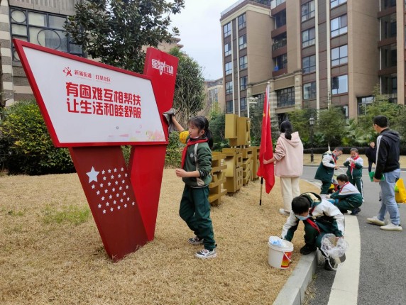 充实“N”支队伍,弘扬文明实践风尚,变单位单打独斗为协同作战。以社区“1357”网格化管理体系为主路径,将在职党员干部编入重点问题帮解队、矛盾纠纷化解队、小区环境治理队、政策法规宣讲队等7支志愿服务队伍,截至目前,报到在职党员干部838人,联络上级及其他志愿服务组织对接相关工作30余次,帮助辖区居民解决困难问题30余件,调解成功各类大小矛盾纠纷4起,开展深文环境整治活动50余次,开展各类宣传活动70余场。结合社区实际,按照土地利用最大化、亲子互动密切化、学生培养全面化的目标,在红星社区关工委与遵义市幸福小学研究协调下,共同打造家校社劳动实践基地——青鸟种植园,充分利用户外劳动,真正将“德、智、体、美、劳”五育融合促发展。联合新蒲街道社工服务站、红星闪耀志愿服务队及民族文艺团,组建幸福花时装爱好队、新蒲阳光太极队、夕阳红舞蹈队、民族手鼓队、葫芦丝队等富有民族特色的文艺表演团队,弘扬志愿服务精神,打造服务独特、韵味别样的志愿服务队伍,并在建党100周年、重阳节、国际志愿者日等节点举行各类“睦邻”文艺汇演,吸引各类爱好者参与其中,形成兴趣相投、和谐共处的邻里氛围。