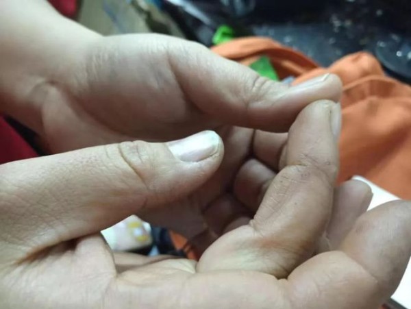 分拣衣物工作量大,每一名志愿者的手指都开裂了