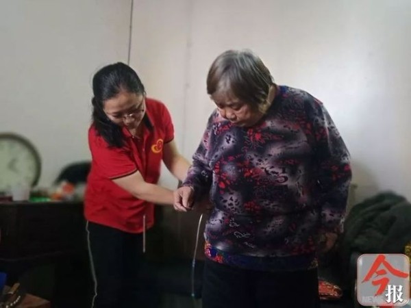 “韦阿姨,这是‘爱心天使’的小傅,这些东西都是她们准备的。”志愿者一行来到韦女士家之后,热情地把米和油放到桌上,询问老人的身体状况。并给老人试穿带来的棉衣和棉鞋。虽然此前已经知道老人体型较胖,她们带来的一件“4个加”的大号棉衣仍有些紧,傅容现场给老人量了身子,打算回去重新找合适的棉衣,再把一件棉衣剪掉袖子改成马甲。同时,还打算给腿脚不便的老人准备一部轮椅,下次一并送来。志愿者们的热心关怀,让老人几度感动落泪。