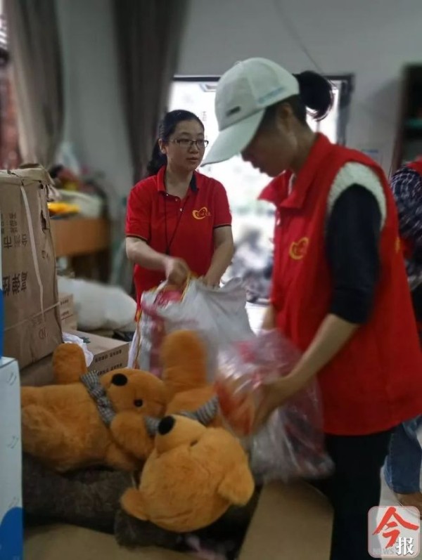 当日下午,记者也对这个中转站进行了探访。这间约200平方米的屋子里,四面墙上有几个柜子,中间有一张拼起来的大桌子,上面摆放着大量爱心人士捐赠的书籍、文具、毛绒玩具、小家电等等,还有一包包、一摞摞分拣好的衣服。在靠近入口的地方,还有几十个刚向“壹基金”申请回来的爱心包。虽然东西很多,但地板、墙面和桌子都显得干净而卫生。在里面的房间里,还放有缝纫设备,可以将衣物根据实际需要改长短,等等。