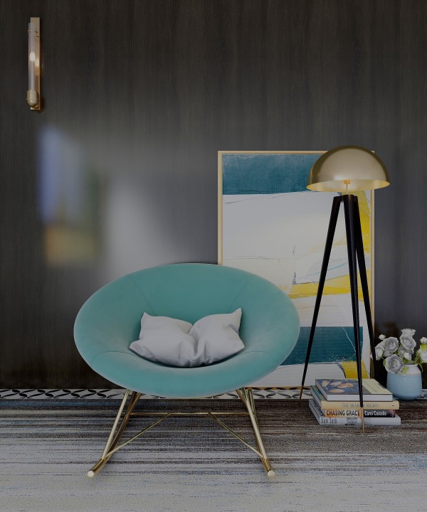 本作品来自于设计师小城生活家居美搭设计馆,本案是一个书房休闲阅读区小场景设计案例,背景墙采取的是较为深沉的饰面板作为装饰以及主调,追求的是书房的氛围,稳重,单椅采用了摇摇椅,可以为工作至于小憩一下,湖蓝色的绒面料,给书房添加一摸色彩和舒适,背景画和落地灯等材质相互映衬,赋予的材质体现了轻奢风格的美感。