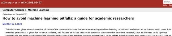 作者是英国赫瑞-瓦特大学数学与计算机科学学院的副教授,同时也是爱丁堡机器人中心的成员,博士毕业已经十多年,这篇17页的论文主要介绍了机器学习学术研究中的一些常犯错误,以及如何避免。