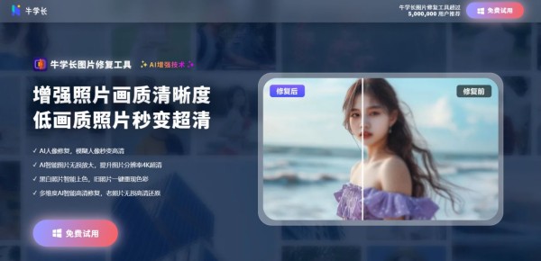 牛学长图片修复工具是专为电脑用户设计的老照片修复软件,凭借“AI细节重建”技术,在处理严重模糊、破损的老照片时表现突出,尤其适合修复具有纪念意义的珍贵旧照。
