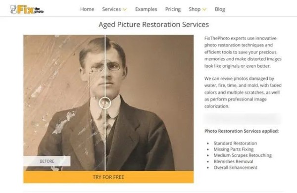 Fixthephoto是一款主打“专业级修复”的在线平台,区别于纯AI修复工具,它结合了“AI智能预处理+人工精细调整”,能处理复杂的老照片破损问题(如严重撕裂、缺失部分画面、大面积污渍),适合修复具纪念意义的珍贵老照片。