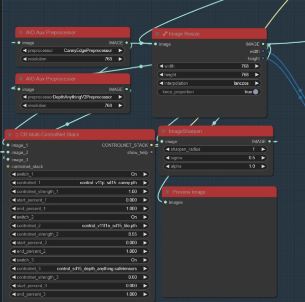 CR Multi-ControlNet Stack (1):一个多重ControlNet堆栈,用于精细控制修复过程中的各个参数,确保照片的修复质量。