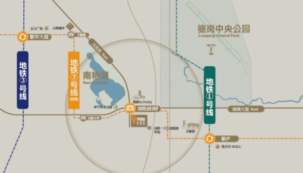更令人瞩目的是,项目毗邻世界级的骆岗中央公园,距离仅约800米。作为合肥的城市中心载体,中央公园提供园区运动、休闲、文化、科普、美食等全方位生活配套。这种“双园环抱”的生态格局——南艳湖与中央公园的双重加持,让业主在日常生活中就能接触自然,享受新鲜空气,为身心提供一方静谧归属,实现“推窗见景,移步入园”的理想生活状态。