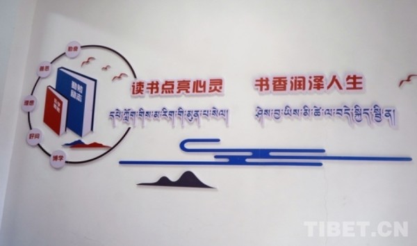 图为西藏自治区那曲市索县乡村书屋里的汉藏标语 摄影:吴建颖