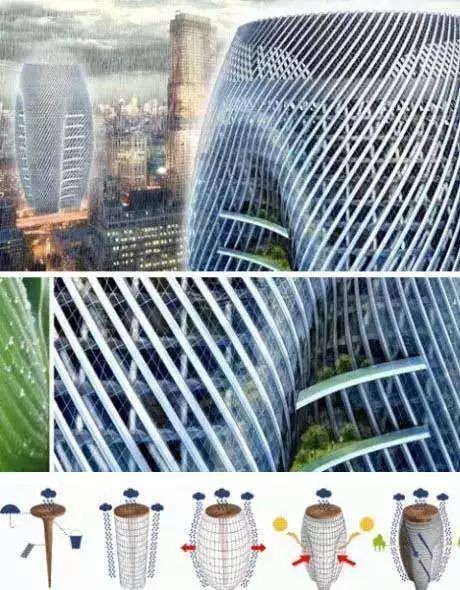 如何让建筑在最大程度上收集雨水?H3AR设计的集雨摩天楼可能给出答案。借助于覆盖整个外部的水槽网,雨水将直接流入一个处理厂。处理后获得的生活用水可用于冲马桶、洗衣服、其他清洗工作以及浇灌植物。