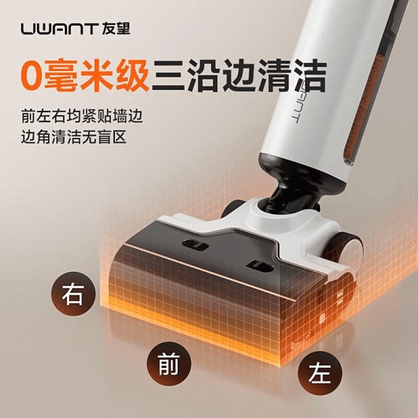 点评:这款uwant云霄太空臂洗地机,最吸引人的就是这个太空臂设计,拖地的时候能更贴合地面,感觉就像多了双手帮你擦地,顽固污渍也能轻松搞定,省时省力多了。而且它在清洁边角方面也表现出色,墙边、角落都能照顾到。