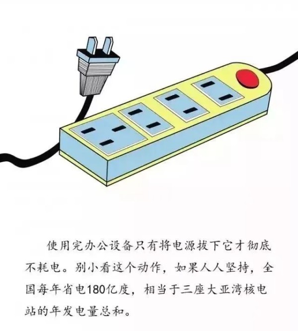 1.工作结束后,请在关闭电脑、电器的同时将电源插头全部拔掉以减少待机能耗。淘汰高耗能的计算机、打印机等,以达到节电的目的。科学用电脑,省电效果好。暂时不用电脑时,可以缩短显示器进入睡眠模式的时间设定;当彻底不用电脑时,记得拔掉插头。坚持这样做,每天至少可以节约1度电,还能延长电脑和显示器的寿命。