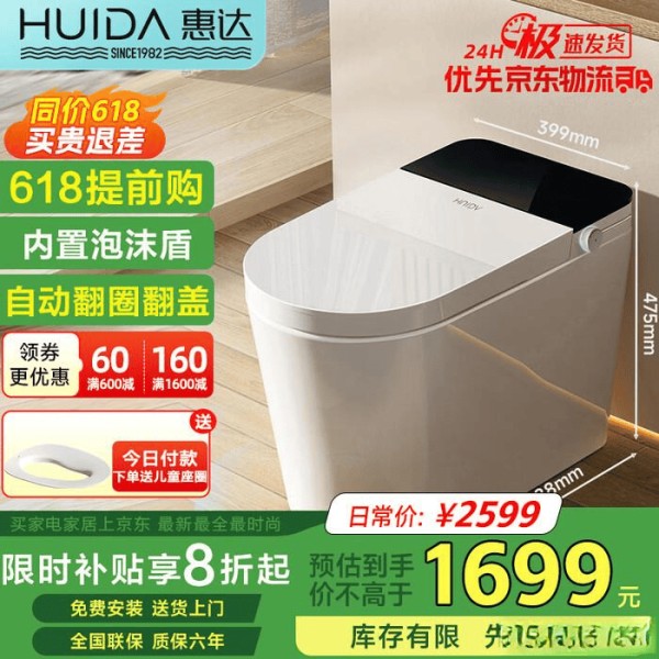 推荐理由:惠达智能马桶HDZB-X9被誉为马桶界的“黑科技”。它的“轻音冲”技术使得冲水时声音小得几乎听不见,特别适合晚上使用,不会打扰到家人。此外,喷射面积大幅提升,冲洗效果更为出色,节水效果也非常明显。座圈的自动调节温度功能,让冬天的使用更加舒适。
