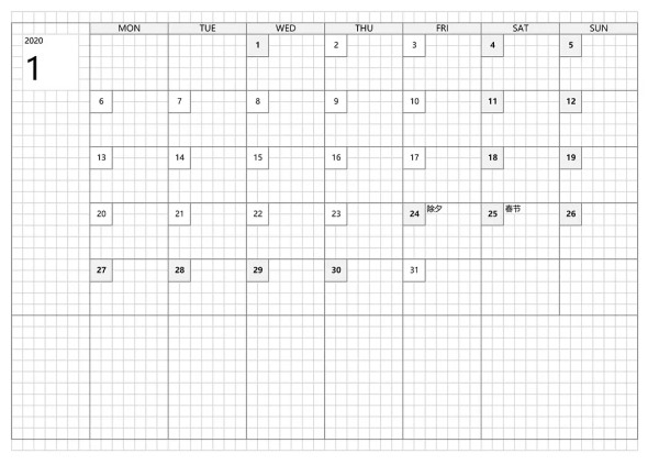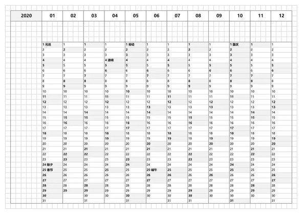 每月重要事项写在各月方框内,还可以给每月定个关键词。