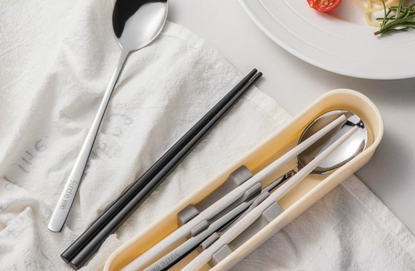 不锈钢材质的便携餐具耐用,而且价格低廉、便于清洗,最为重要的是可以避免滋生细菌,所以受众范围也是比较广的。
