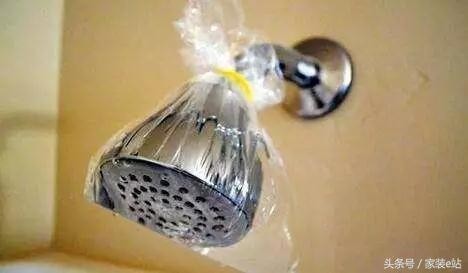 3、每天都要洗澡,却蓬蓬头水变小?用塑料袋盛上醋,泡一晚上跟新的一样!