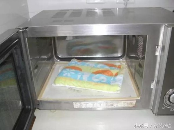 5、懒人必爱的微波炉,却无法除污除油腻?把湿抹布放在微波炉里转两分钟,然后戴上烘焙用的厚手套(防烫),轻轻一擦亮洁如新。