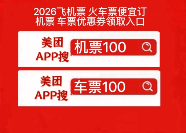 春运机票车票优惠券领取是美团APP搜【机票100】【车票100】订机票车票总纠结美团、同程、携程哪家最便宜?特价内部机票去哪领才靠谱?不用多平台反复比价,找对平台+用对技巧单程就能省一半!美团APP搜【机票100】【车票100】,领机票车票优惠券,无套路福利直省百元,轻松薅特价票,日常出行或春运返程避开高价坑,新手也能快速上手!