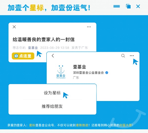 壹 基金 以“尽我所能、人人公益”为愿景,专注于灾害救助、儿童关怀与发展、公益支持与创新三大领域,是5A级社会组织,连续十四年保持信息公开透明度满分。 感谢壹家人支持,欢迎壹家人监督 。