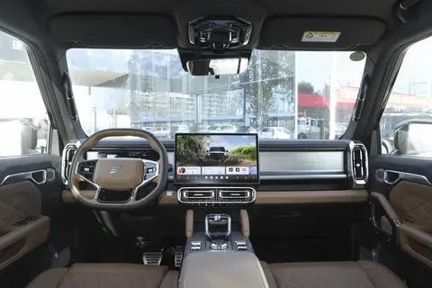 安全性是选车的底线,这台车在安全性方面的表现也值得关注。它采用了一体式激光拼焊钢笼式车身结构,还配备了8根车顶横梁,扭转刚度达到31000Nm/deg,车身80%的部位都用了高强度钢,能很好地保障车身刚性。220mm的离地间隙和700mm的涉水深度,再加上金属油箱护板,平时遇到马路牙子或者积水路段,也不用太担心刮到底盘或者损坏油箱。另外,这台车还有6.6kW的外放电功能,户外露营的时候,能连接电磁炉、电烤架、投影仪这些设备,大大提升露营的乐趣。比如一家人在郊外露营,用外放电功能煮个火锅、看个电影,体验感特别好。